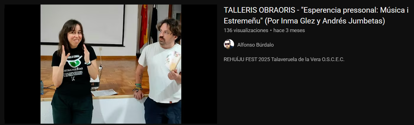 Actué por rimera vez en el festival de promoción de las lenguas extremeñas REHUIJU FEST, organizao por la OSCEC (Órganu de Seguimentu i Cordinación del Estremeñu i la su Coltura) en julio de 2025 en Talaveruela de la Vera (Extremadura) acompañao mi padre Juanjo Bermejo Vega al cajón flamenco, y donde tuve el placer de colaborar en el taller impartido por Inma González del grupo Fônal ‘TALLERIS OBRAORIS - "Esperencia pressonal: Música i Estremeñu" ‘. Ambas pueden verse en Youtube gracias los montajes de Alfonso Burdálo del grupo Fônal también.