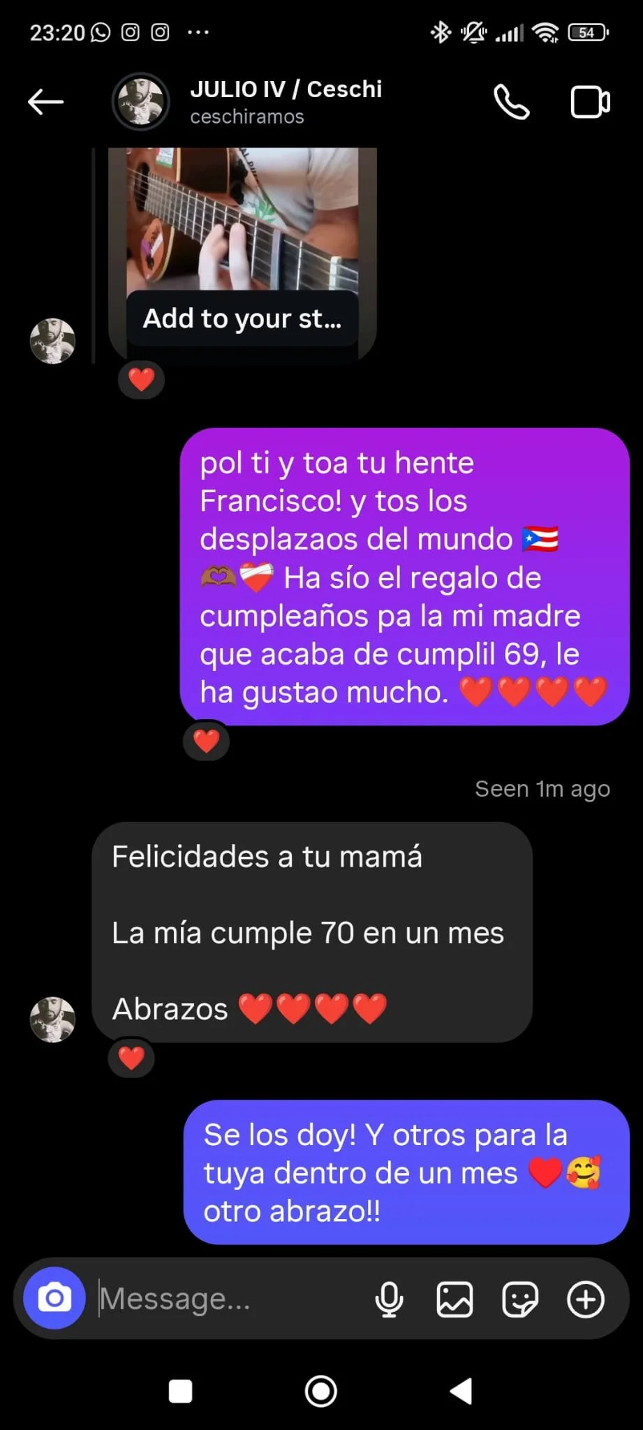 Actué dos veces en julio y agosto de 2025 en la manifestación semanal contra el genocidio palestino y el terrorismo sionista, organizada en frente del ayuntamiento de Gante cada jueves por varias organizaciones, destacando el Cafe Palestina y los JCB (Jonge Communisten van België), la primera vez sólo y la segunda acompañado de Ozzy (buscar nombre si quiere darlo). Pueden verse en Instagram.